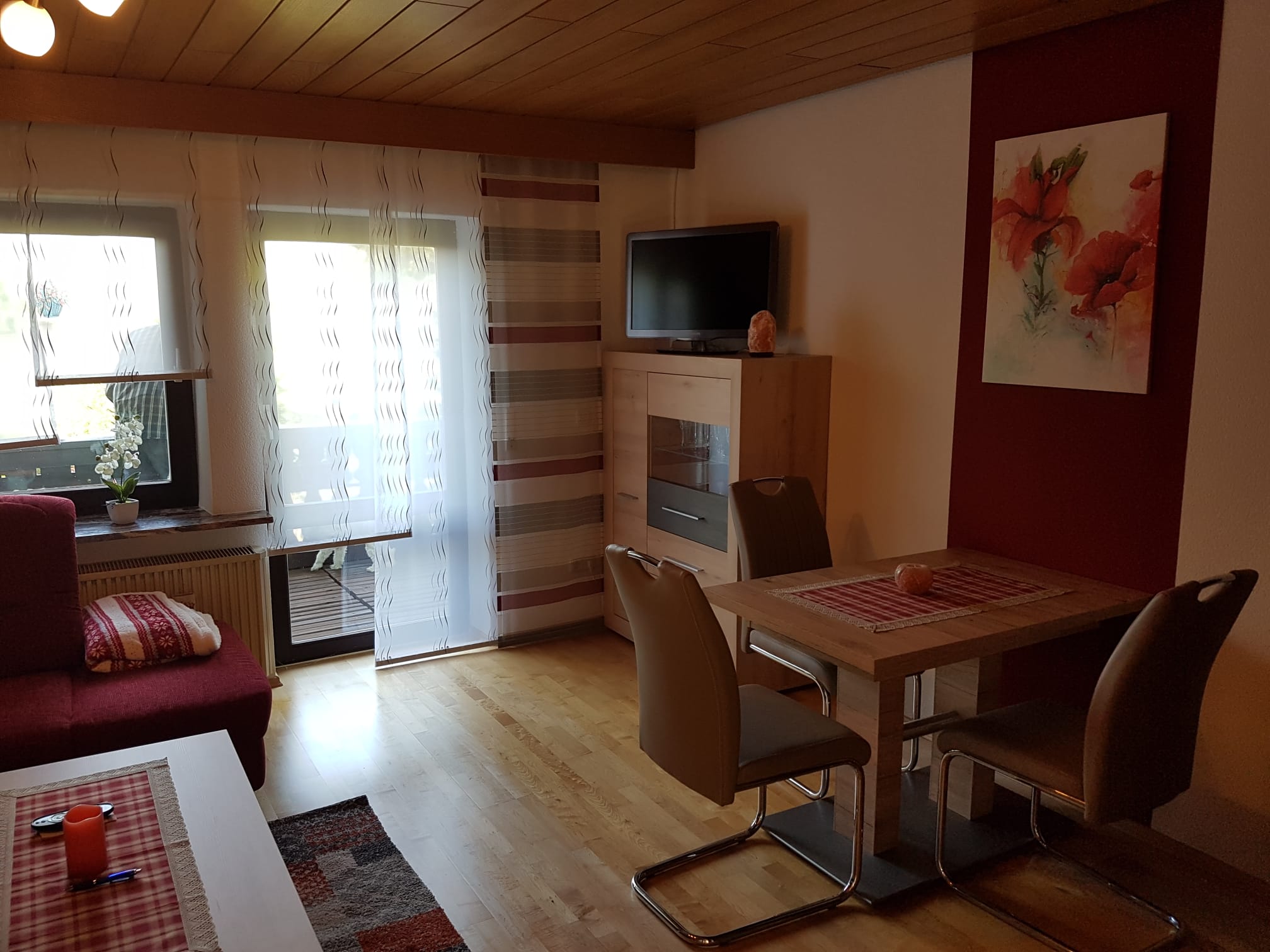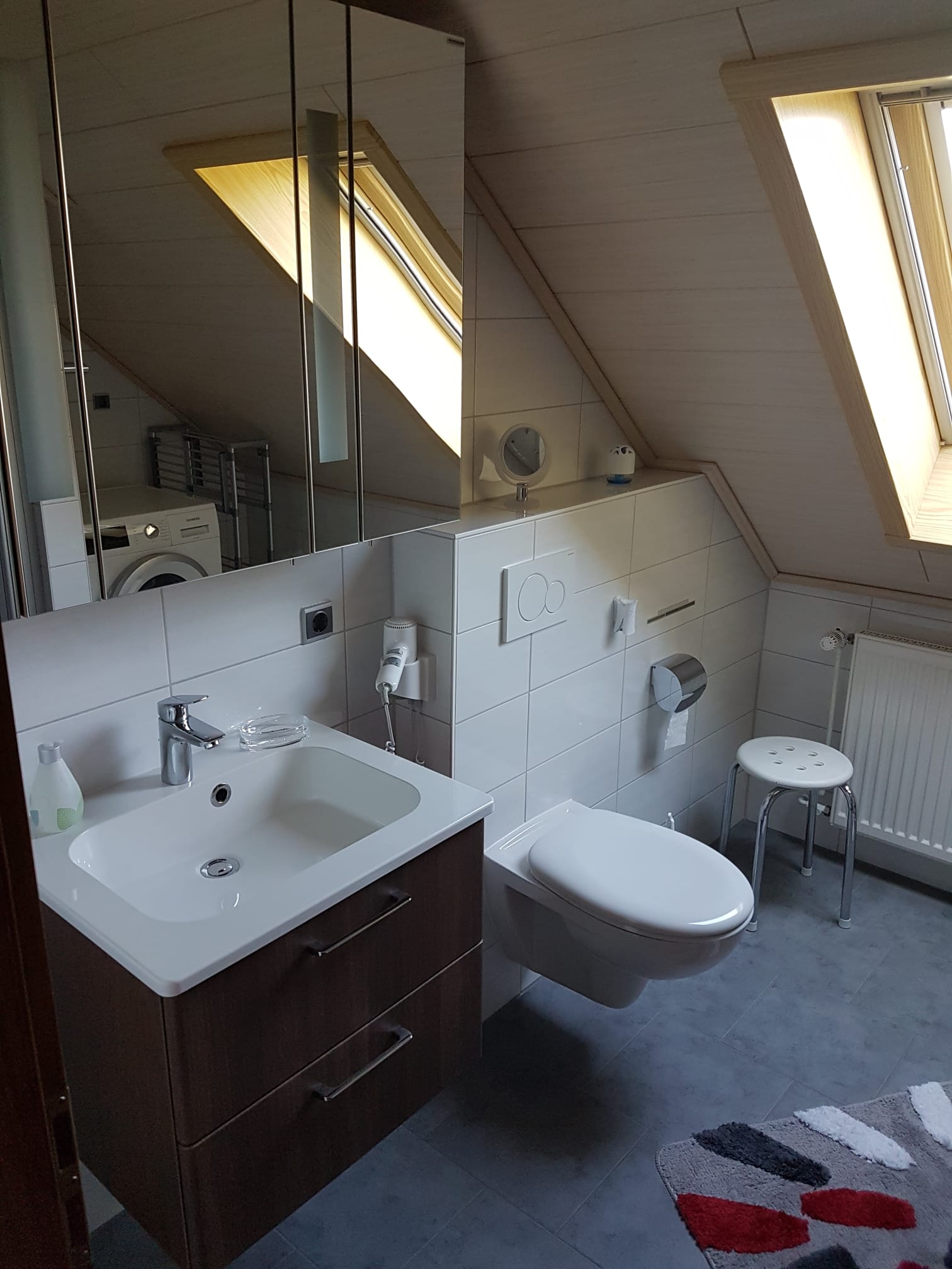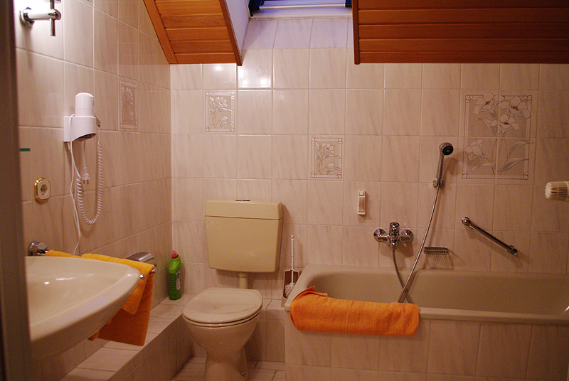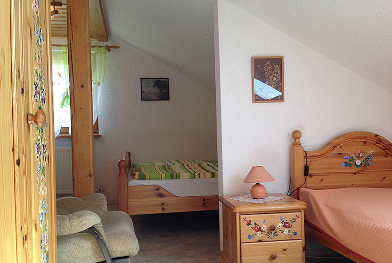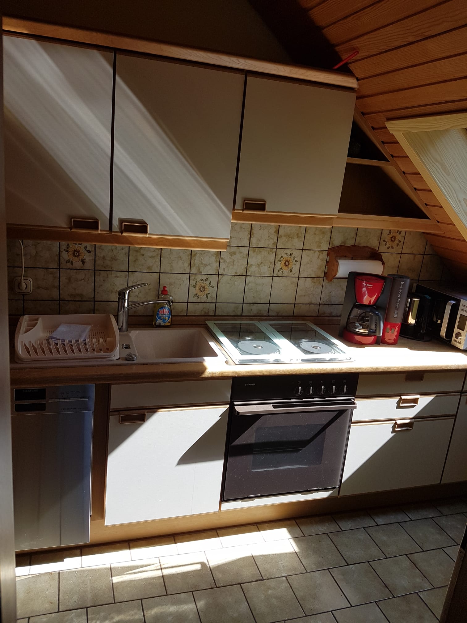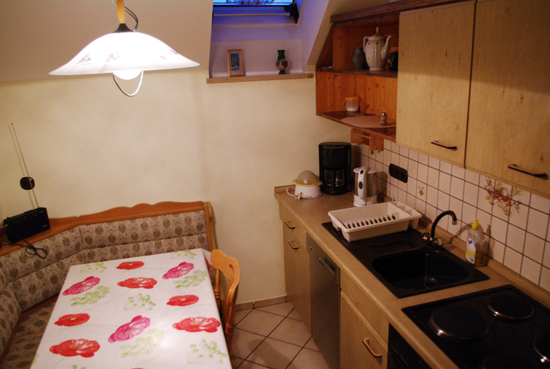 Unsere 3 * Dachgeschoßwohnung im Wohnhaus bietet Ihnen eine Kompfortabele eingerichtete Wohnung. Sie bietet Platz für 2 Personen in einem Schlafzimmer, einer Komplett ausgestatteten Küche, Bad mit Wanne, Dusche und WC sowie einem Wohnzimmer mit Sat- TV, Telefon und einer Essecke. Waschmaschine und Geschirrspüler gehören ebenfalls dazu wie auch bei Bedarf Babyreisebett und Kinderhochstuhl.