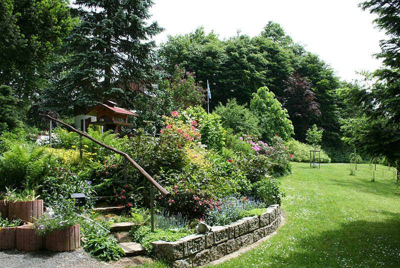 Unseren Gästen steht eine großzügige Terrasse sowie ein parkähnlicher Garten zur Verfügung. Der Garten wird auch gerne als Liegewiese genutzt.
