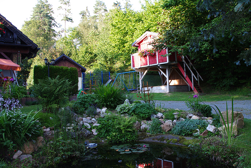 Bei Grillabenden mit Lagerfeuerromatik können Sie an unserem kleinen Teich am Waldrand den Tag entspannt ausklingen lassen.
